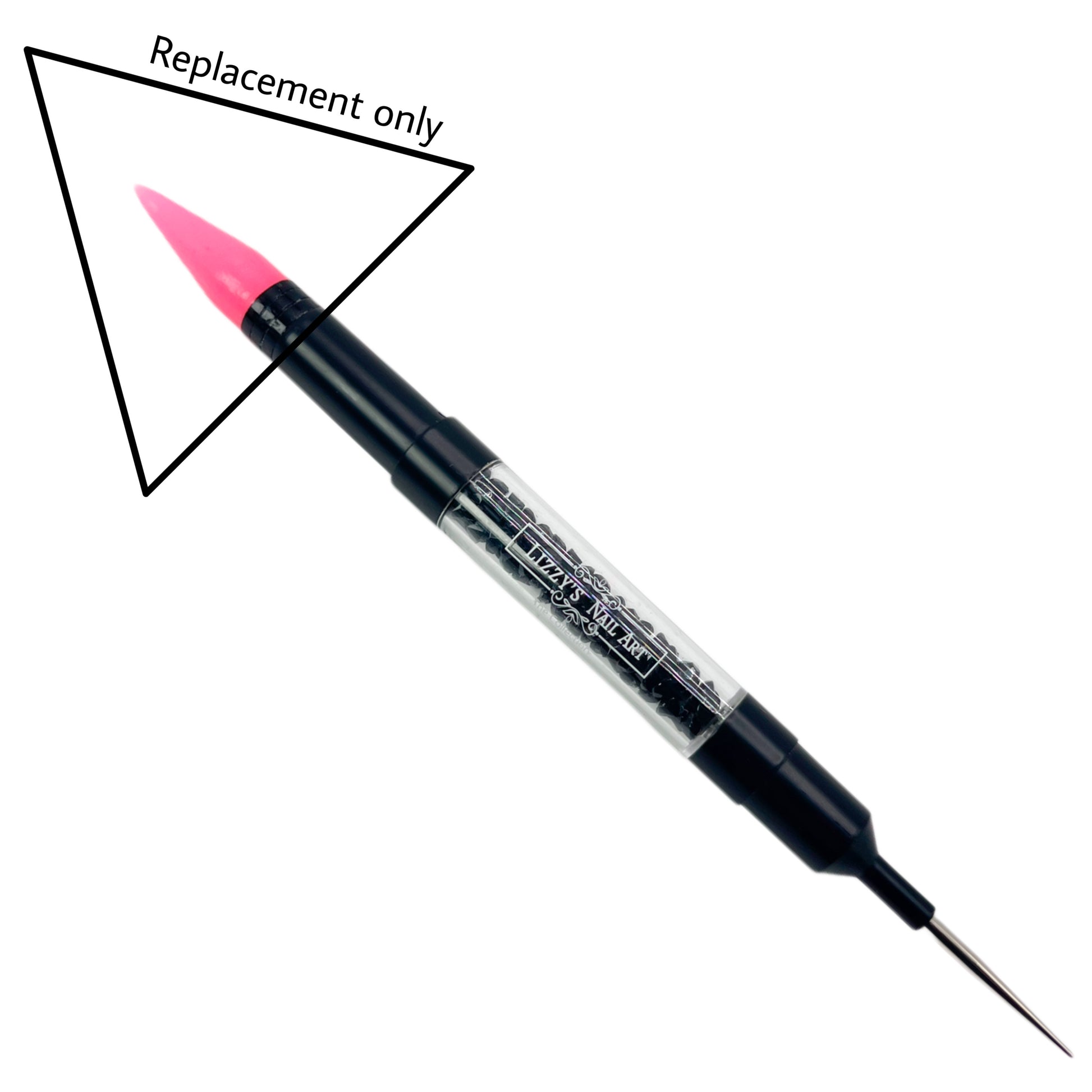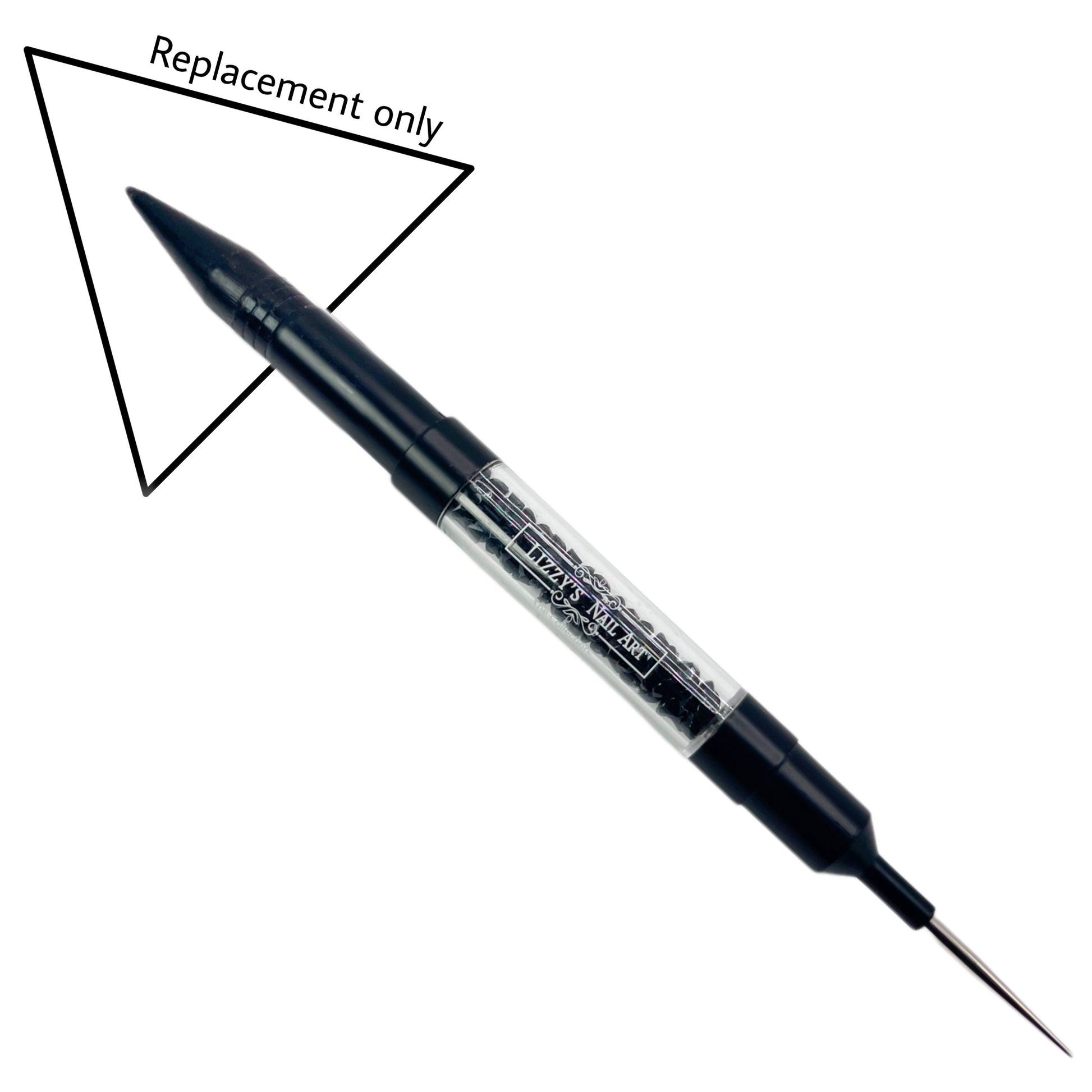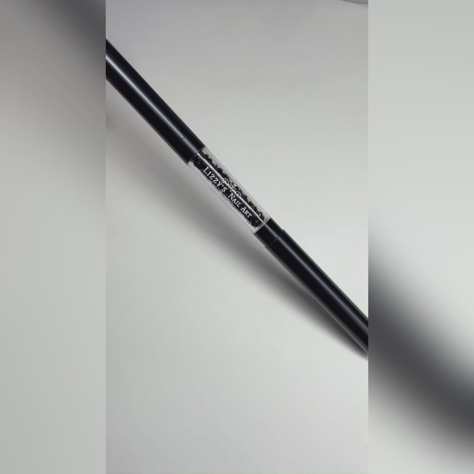 Bling picker upper! Picks up rhinestones and tiny objects effortlessly. This has a sharp dual end for moving stones and creating tiny dots. Matte black exterior with acrylic handle filled with rhinestones inside. It’s comfortable to grip and easy to control during application. Sleek design suitable for nail salon or home use to create beautiful nail art designs!