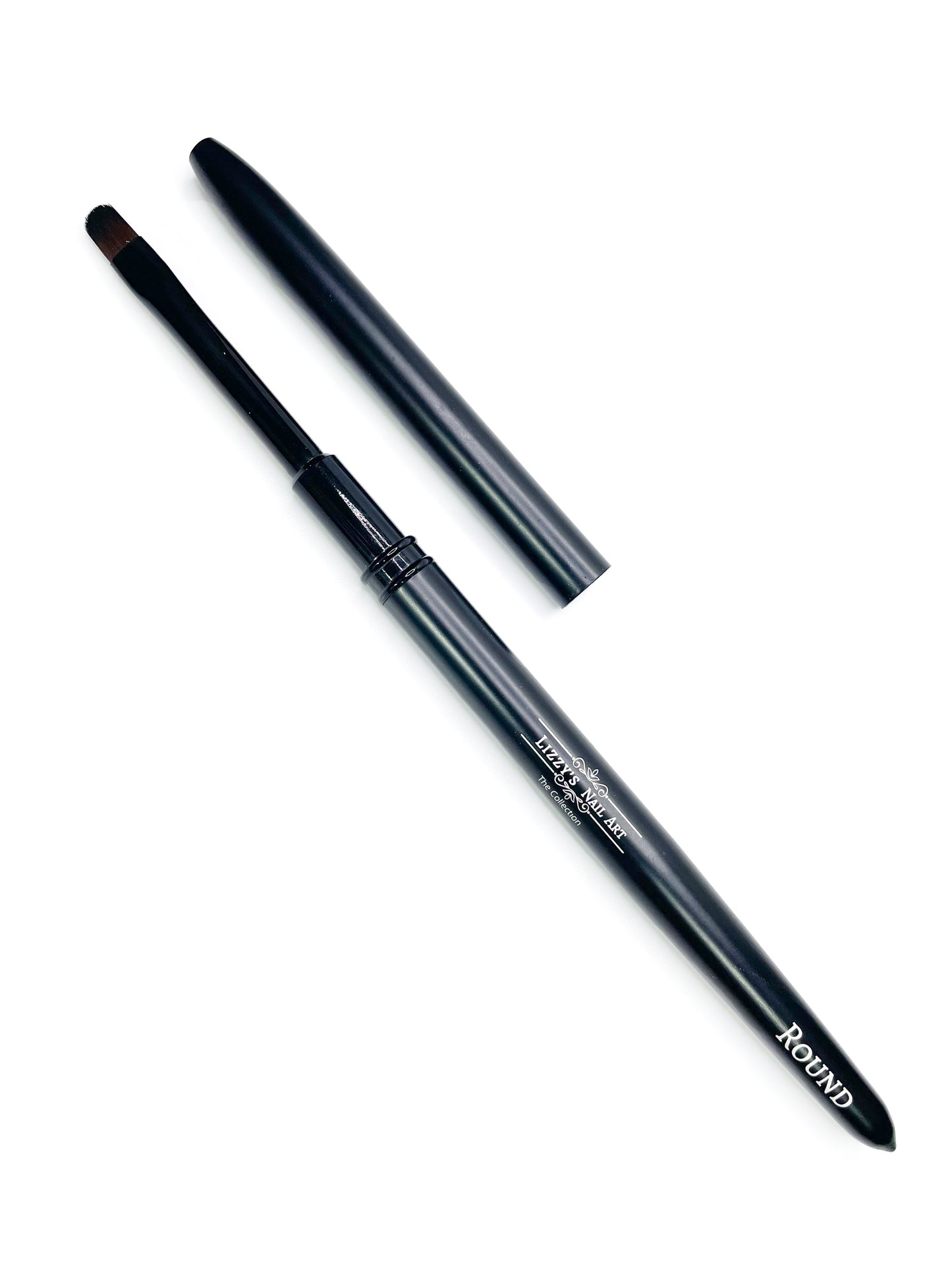 Matte black professional nail art brush. This 8mm high quality brush is great for cleaning French curves. Also used for gel polish application, builder gels, nail powder and nail glitter can be picked by this brush. This superior brush is also a multi-tool not only for nails, but it’s super soft bristles can also be used for applying make up such as eyeliner & eyeshadow. This flat round tip can create a perfect eyelid crease.